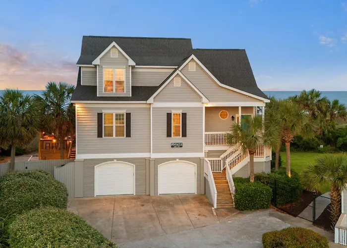 A fully furnished kitchen at this Myrtle Beach property is equipped with tea and coffee making facilities, a refrigerator, and glassware. The Pinnacle villa is just around the corner from seafood restaurant Gulfstream Cafe. The closest airport is Myrtle Beach International, which is 25 km from the 5-bathroom villa.